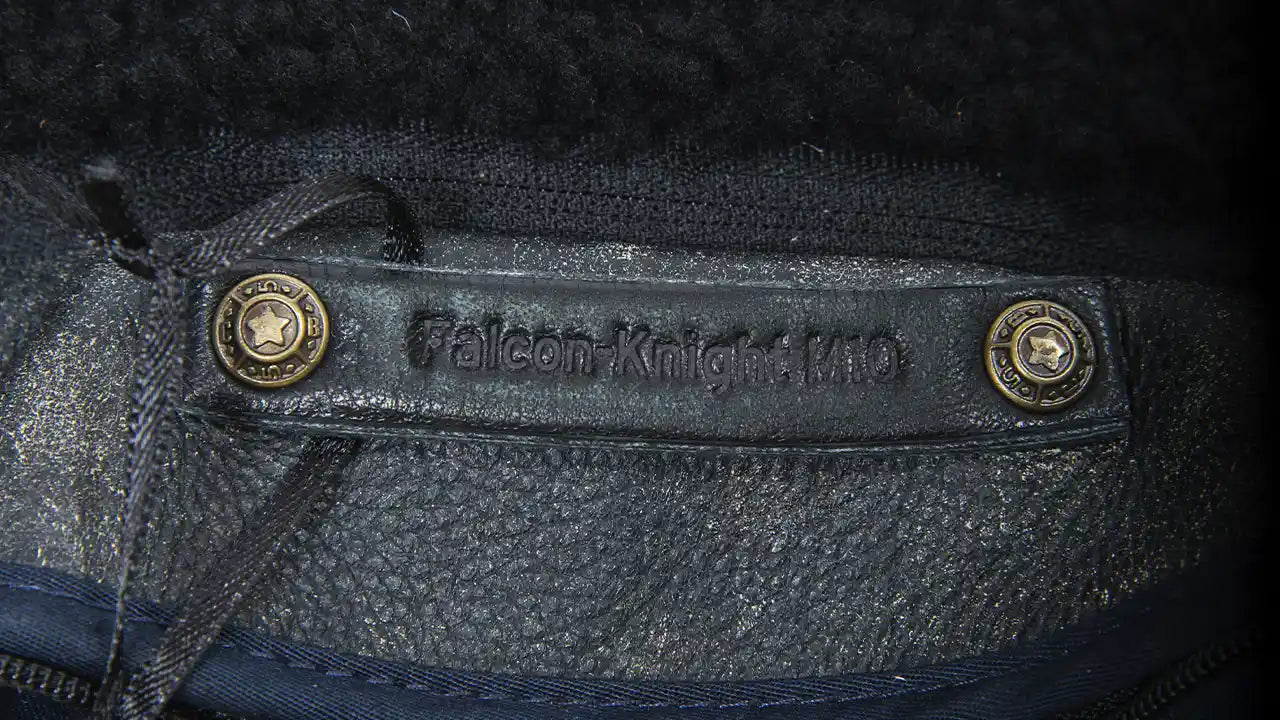 The Falcon Jacket is crafted in a mid-length silhouette, providing a structured yet comfortable fit for the cooler months. It features a classic buttoned front, reinforced cuffs, and two exterior pockets. A zipped chest pocket adds utility without disrupting the clean lines. The removable sheep fur collar attaches with subtle fasteners, offering both warmth and contrast. An interior insulation at 60 g/sqm and additional liner that can be taken out depending on the day’s needs. The leather has been treated to develop a matte patina over time, gradually bringing out natural wear patterns. A small metal emblem on the upper sleeve adds a quiet accent without drawing attention away from the jacket’s form.